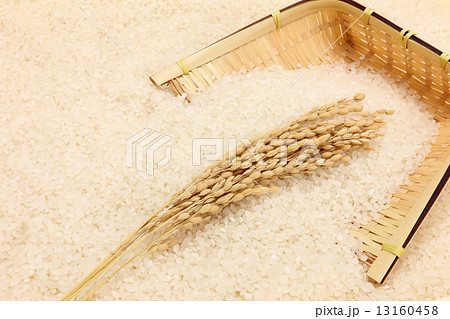 稲穂と米と竹箕