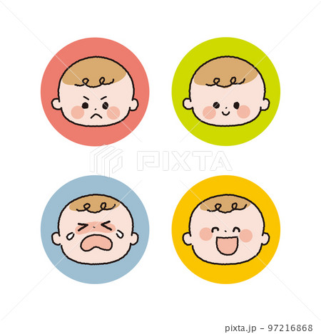 喜怒哀楽赤ちゃんの顔アイコン線なしセット