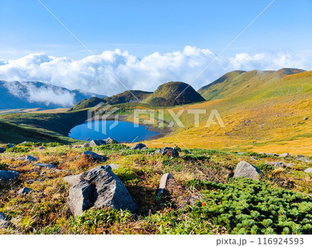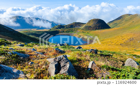 高山植物が咲き乱れる雲上のお花畑、鳥海山(笙ヶ岳) ニッコウキスゲ