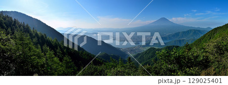 御坂山地の新道峠 FUJIYAMAツインテラスのファーストテラスからの富士山展望 コピースペース