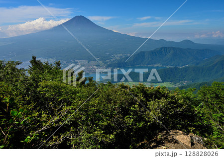 御坂山地の黒岳の森から眺める夏の富士山