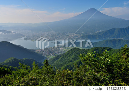 御坂山地の黒岳展望台より 夏の富士山と河口湖を望む