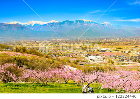 山梨県 桃の咲き誇る笛吹桃源郷 ~桃畑と南アルプス~