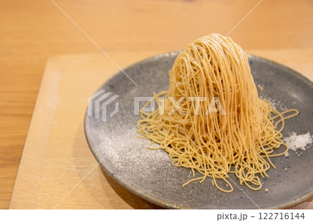 錦糸モンブランと青い皿