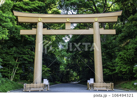 明治神宮 第一鳥居(南参道鳥居・一の鳥居) 2022年7月4日100年振りに建替え
