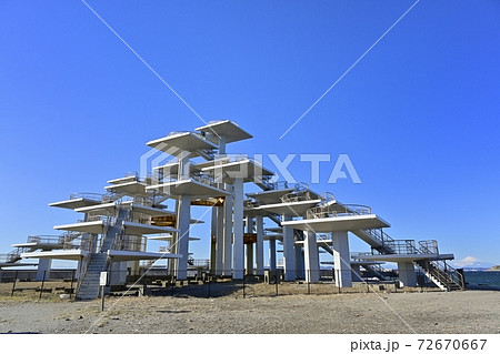 富津岬 明治百年記念展望台に富士山
