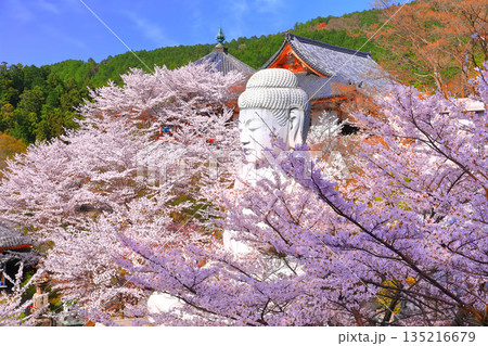 【奈良県】桜が満開の壺阪寺(大観音石像)