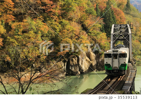 只見線の風景 第一只見川橋梁を渡る列車 福島県三島町