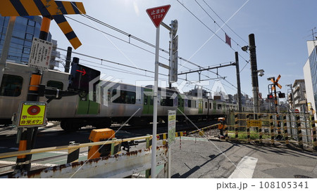 第二中里踏切を走る山手線