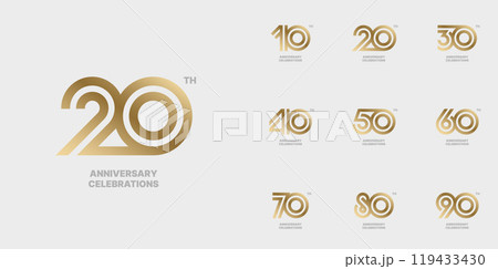 Set of premium anniversary logotype. Golden anniversary celebration emblem design for company profile, leaflet, magazine, brochure, web, banner, invitation or greeting card.