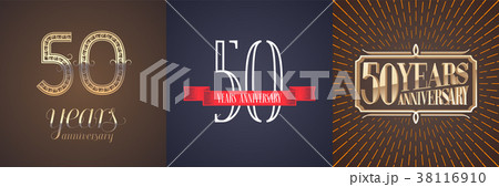 Premium anniversary logotype set. Golden anniversary celebration emblem design.