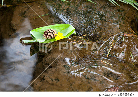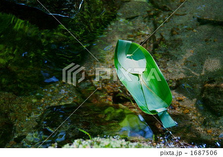 笹舟 笹の葉 小川