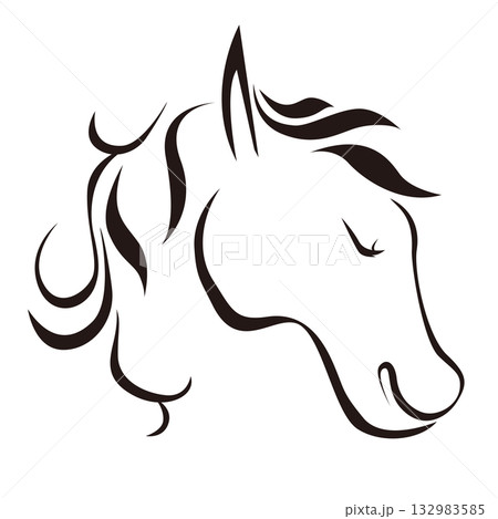 優しい目をした美しい白馬の顔のイラスト 墨絵風でお洒落な午年の年賀状素材 ベクター