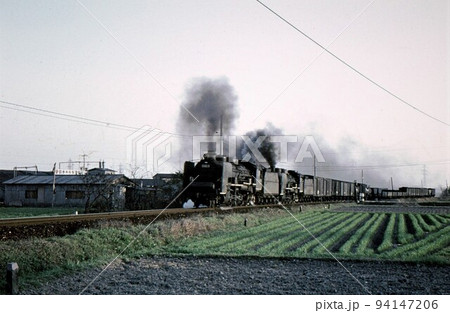 昭和43年 D60牽引貨物列車、九州 筑豊本線 記録写真 古いカラー写真