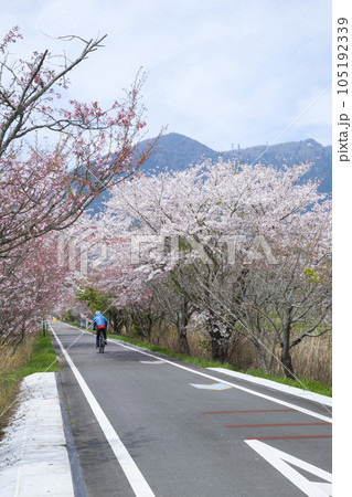 つくば霞ヶ浦りんりんロードの桜並木と筑波山 茨城県 サイクリングロード