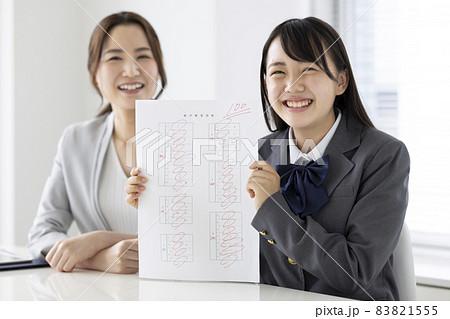 塾でテストの結果を喜ぶ女子学生 高校生 中学生