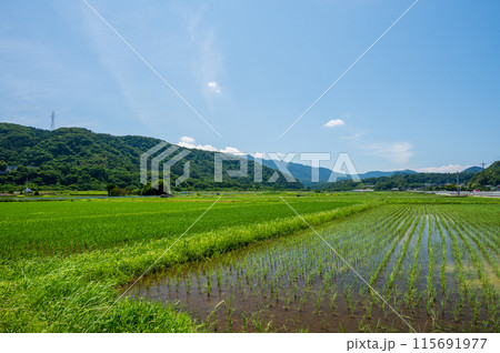 箕輪耕地の田園風景 初夏の田んぼ景色 水道坂