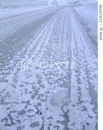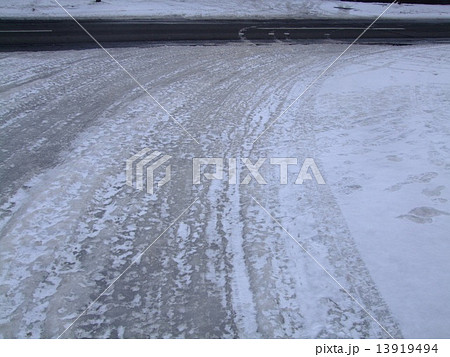 超危険!スリップを伴う、つるつるアイスバーンの画像写真
