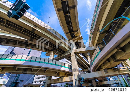 箱崎ジャンクション 首都高速 高速道路 建築 道路 信号機 車 午後 深夜 夏 中央区 東京