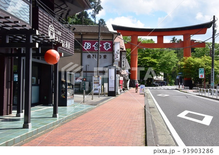 箱根町 芦ノ湖畔の国道1号線沿い街並みと箱根神社第一鳥居