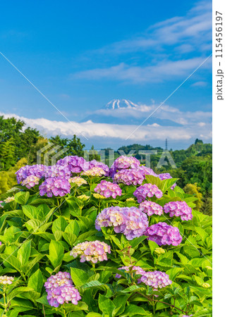 (静岡県)箱根西麓から、アジサイ越しの富士山