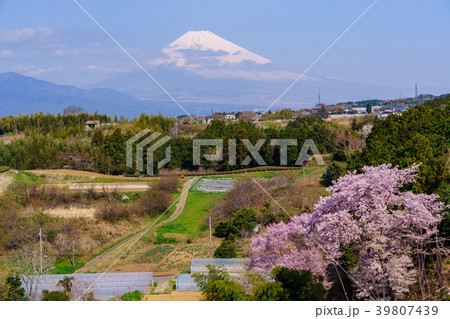 (静岡県)桜咲く、箱根西麓から望む、富士山