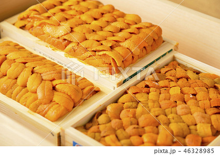 木箱に入ってる高級食材のウニ