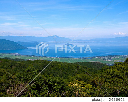 滋賀県、箱館山から俯瞰する琵琶湖方面の風景
