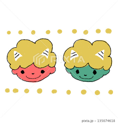 赤鬼と青鬼の子供のやさしい手描き風イラスト1 節分・豆まき・おたより・子ども向け