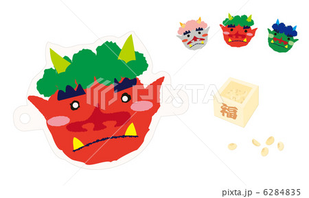 赤鬼 鬼 顔 お面 節分 行事 イベント 豆まき 挿し絵 イラスト
