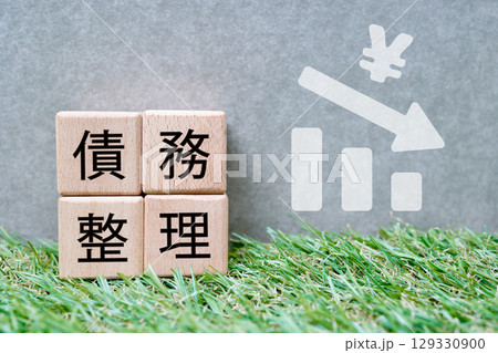 借金減額のイメージ ローン軽減・債務整理・返済額の減少を表すブロック