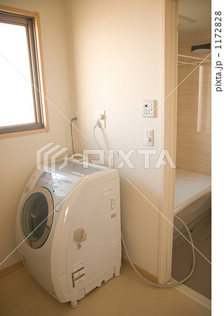 ドラム式乾燥機付き洗濯機の扉を開ける素材写真