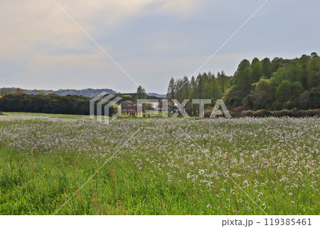 福岡県築上町のハマダイコンが群生する草地からメタセの杜