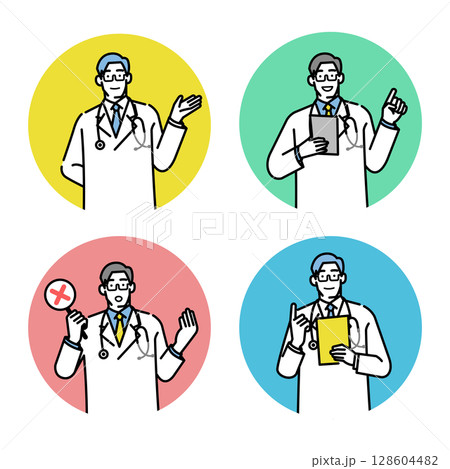 やさしく説明する医師の男性キャラクター(吹き出し・バストアップ)