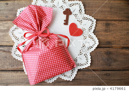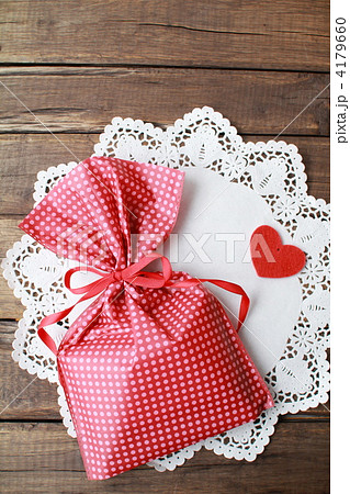 プレゼント 簡易の袋ラッピングとハートのカード