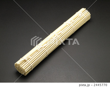 巻きすの上に乗っている太巻き、キンパを黒背景で撮影