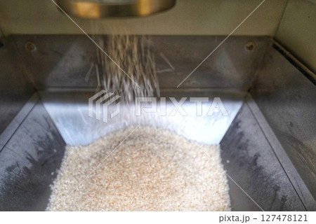 精米機にかける玄米