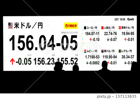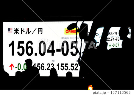 日本の東京都市景観最高値更新5万8850円27銭株価/終値。米ドル/円156.04-05=2月27日
