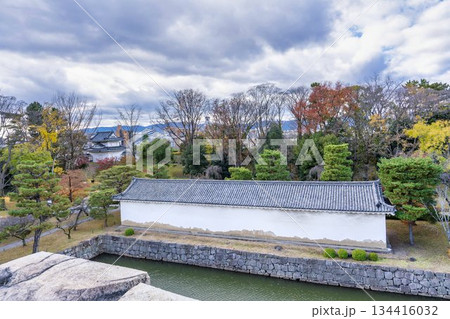晩秋の二条城 天守閣跡から見た堀と西南土蔵 (米蔵) 京都市中京区