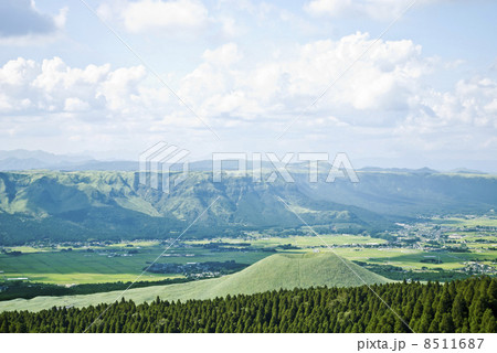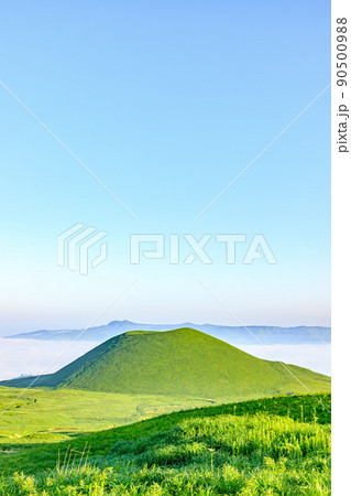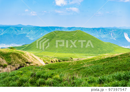 阿蘇山と草千里 新緑と初夏の季節 最高に美しい晴天の絶景風景 Mount Aso