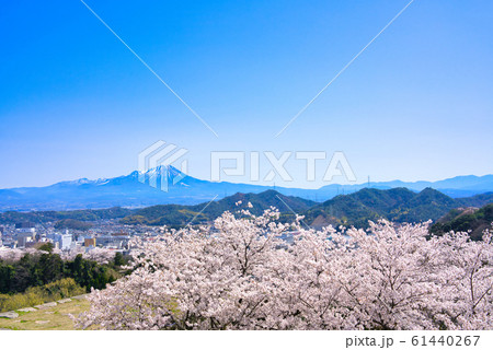桜咲く春の米子城跡と大山
