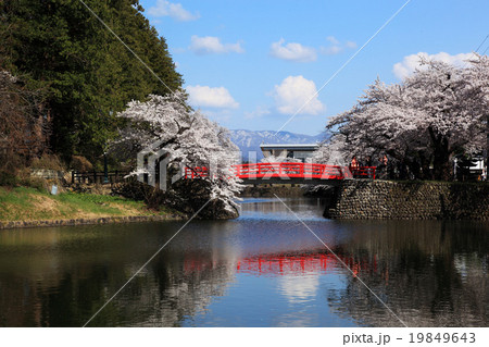 山形県米沢市 春の米沢城址のお堀と満開の桜