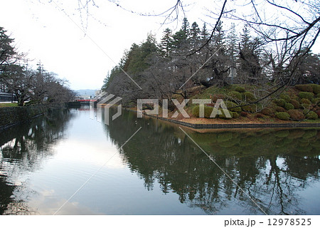 冬の米沢城跡(上杉神社)のお濠(堀) 山形県米沢市
