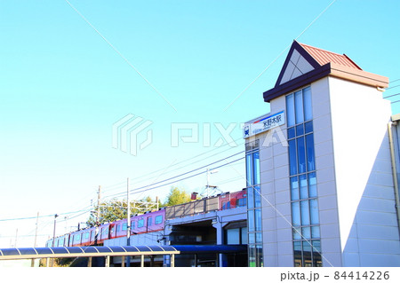 愛知県日進市、名鉄豊田線米野木駅を発車する電車の風景