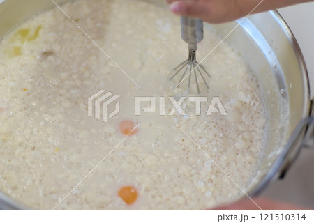 きな粉の蒸しパンの材料を混ぜ合わせる