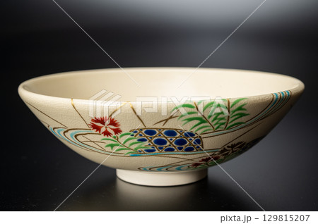 仁清写 撫子絵平茶碗2|粟田窯 曉山 作の雅やかな京焼抹茶碗