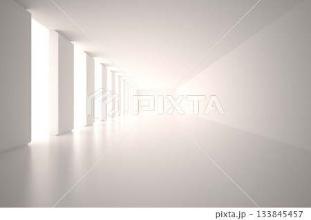 Showing flat design white corridor extending into vanishing point, featuring vertical windows