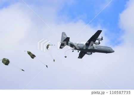 輸送機から降下するレンジャー 空挺降下 落下傘降下訓練 特殊部隊