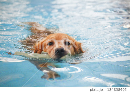 プールで泳ぐゴールデンレトリバー