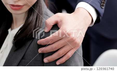 上司・役員から説教・叱咤激励される若いビジネスマン男女(パワハラ・モラハラ・社内不倫・トラブル)